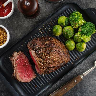 Das Roastbeef lässt sich hervorragend im Ganzen zubereiten, alternativ auch in portionierter Größe als Rumpsteak.